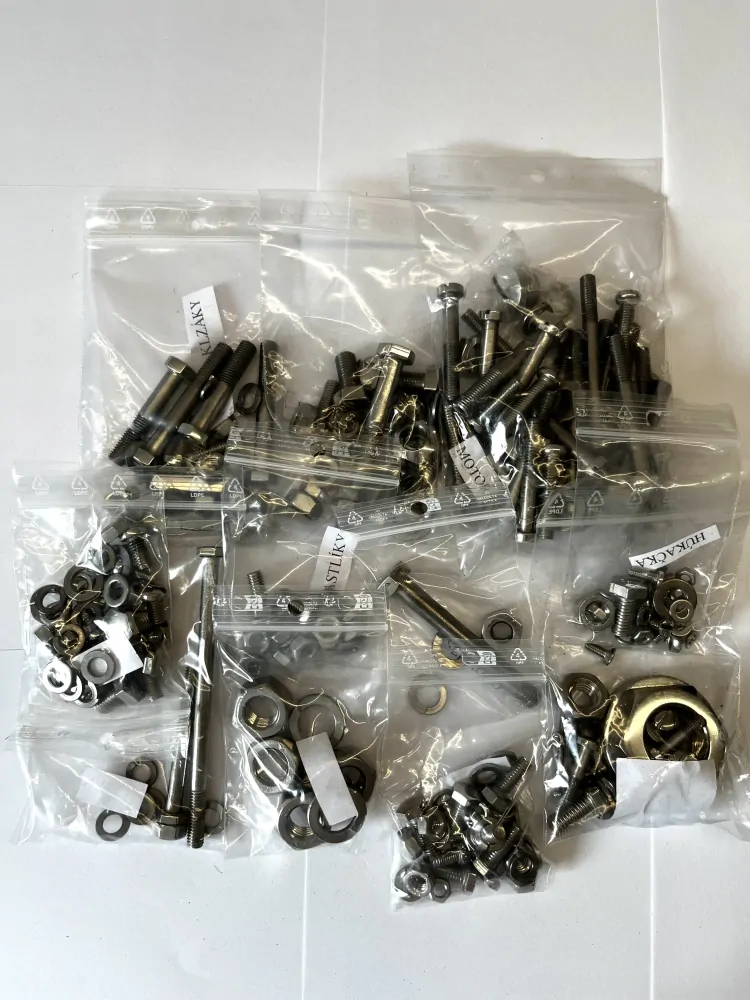 Sady šroubů jsou sestaveny dle každé motorky zvlášť tak, jak byla vyrobena v originálu. Proto upozorňujeme, pokud někdo vlastní motorku, tzv. skládačku - kombinace více typů motorek - může nastat problém.